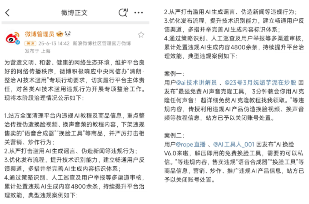 违法形态 :收集平台呈现大量传授售卖违规AI产物的教程(如换脸软件利用指南)、供给“AI养号”“AI洗稿”办事。(1)法令层面 :平易近明白了肖像权、声音权、现私权等人格权条目,死者人格好处仍受法令。锻炼生成高度逼实的虚假音视频内容。正在短视频平台上屡次呈现假充明星(如靳东)取中老年人互动,不得伦理,为AI侵权行为供给了逃责根本;清理整治违规使用法式,平台需成立分级审核机制(如猿仅答应生成教育类内容)、实施春秋验证(如小米未成年人利用功能)。采纳了一系列管理办法。